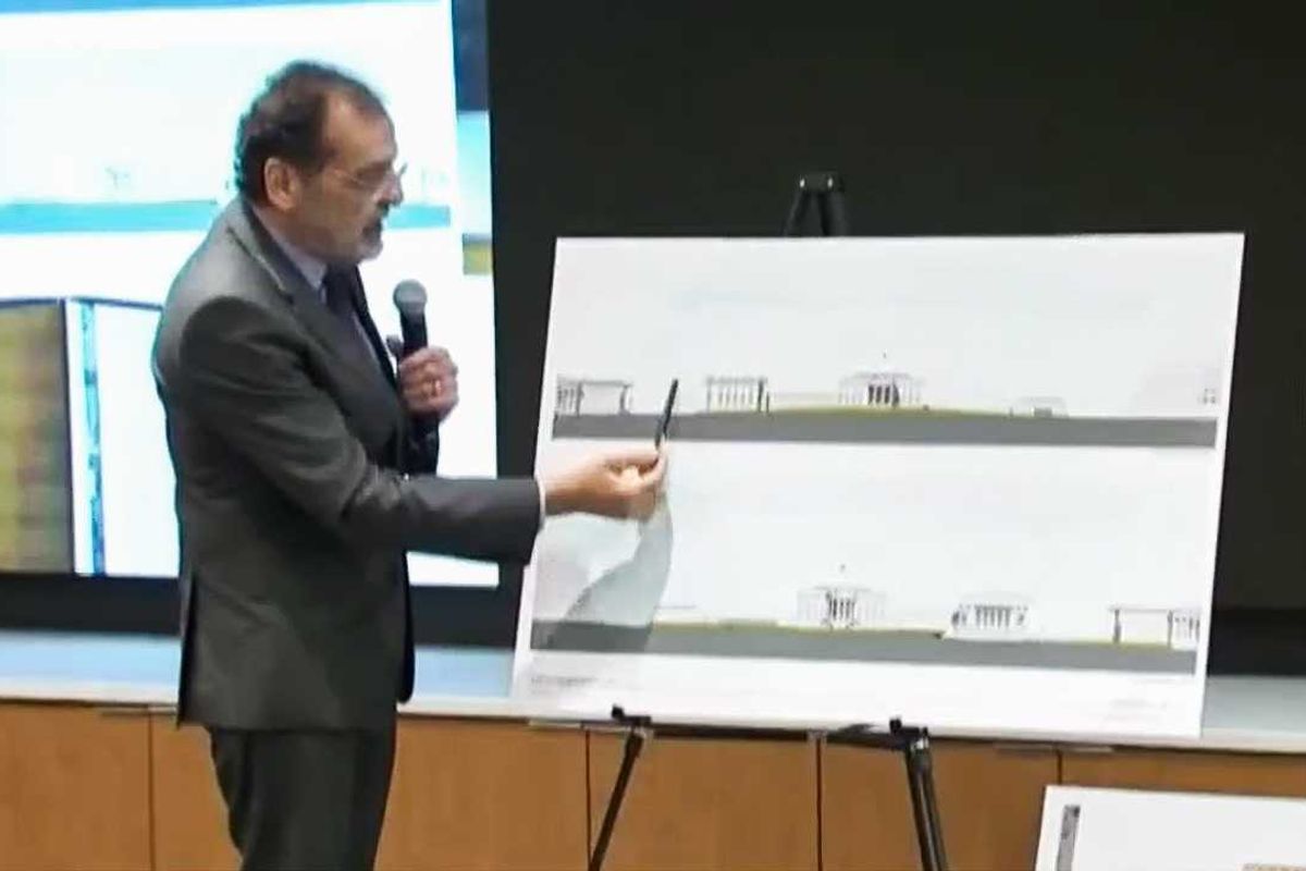 "I did mention the potential for a future addition, a one-story addition to the West Wing. And that would occur right here," one architect explained during a presentation on Thursday. "And you can see that the reason to think that is so that we would reinstate the symmetry along, around the central pavilion of the White House. We haven't looked at, we haven't looked at that at all yet, but hope to do so in the future."